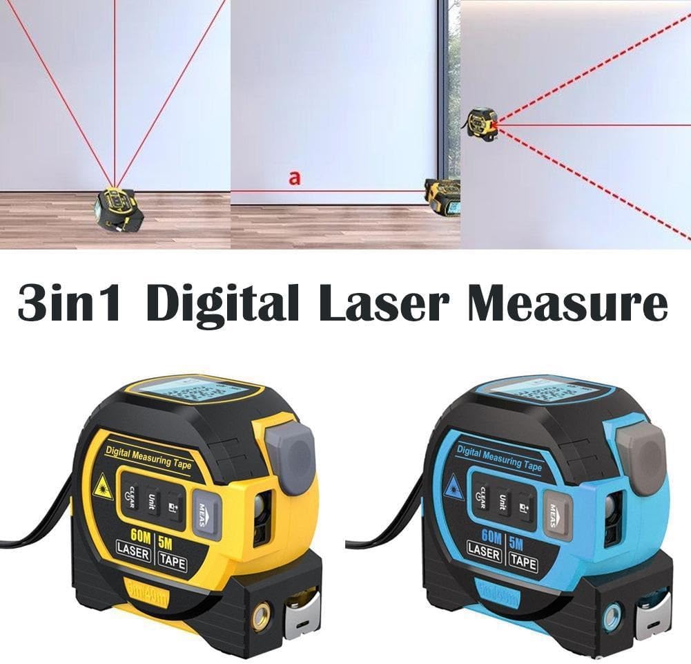 📏 LaserEdge™ 3-in-1 Digital Measuring Tape – Precision Laser + 16ft Tape + Cross Line Tool | LCD Display | Up to 131ft/40M Range